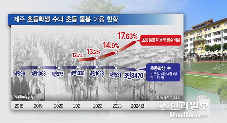 [한라일보] 지난해 말 기준 제주지역 합계출생률 0.83명, 출생아 수 3200명, 초등학생 수 3만명 대 급감. 저출생 문제를 야기하는 원인은 매우 다양하지만 출산 또는 자녀 돌봄에 있어서 발생하는 어려움과 불확실성이 그 원인으로 작용하고 있음은 부정할 수 없는 현실이다. 특히 하교가 빠른 1학년은 일하는 엄마(워킹맘)들이 퇴직을 가장 많이 고민하는 시기여서 '워킹맘의 무덤'이라 불린다.