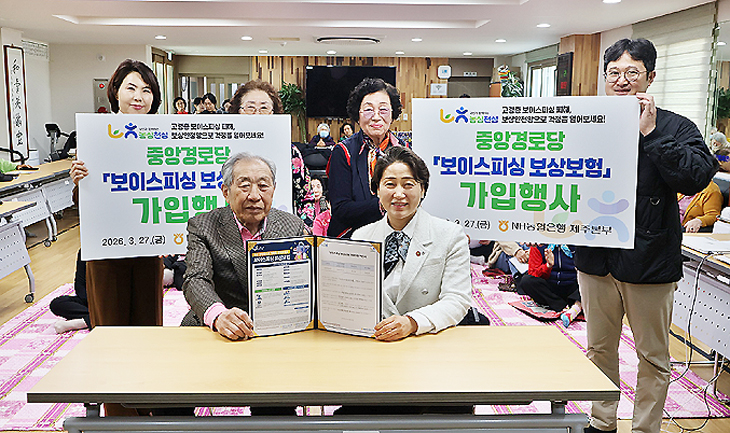 농협은행 제주본부는 지난 27일 중앙경로당에서 '보이스피싱 보상보험 무료가입' 행사를 진행했다고 29일 밝혔다.