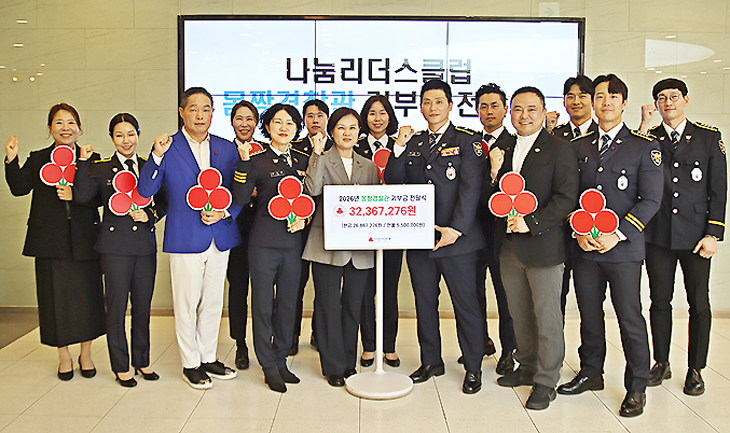 지난해 제주에서 열린 제3회 미스터폴리스코리아 페스티벌에서 선발된 '몸짱 경찰관'들이 달력 모델로 참여해 제작·판매한 수익금 3236만7276원이 지난 24일 서울 사랑의 열매에서 고영찬 제주특별자치도보디빌딩협회장 등이 참석한 가운데 가정폭력 피해 아동들을 위해 기부됐다.