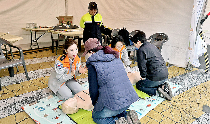 제주소방서 오라의용소방대는 지난 27~29일 전농로 벚꽃축제장에서 안전 순찰과 체험부스를 운영했다. 체험부스에서는 심폐소생술을 시민들이 직접 체험할 수 있도록 운영해 호응을 얻었다.