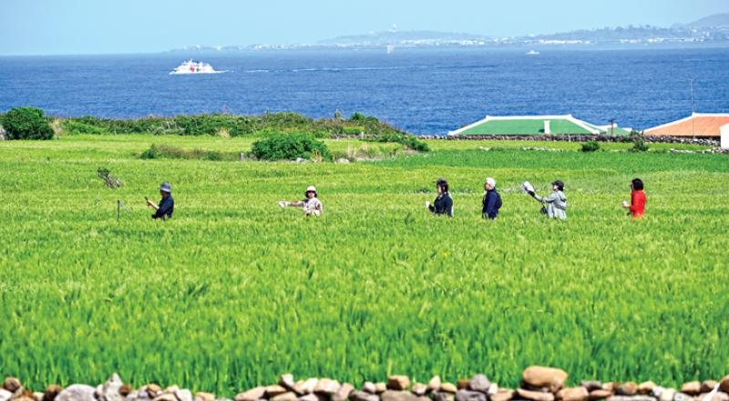 가파도 청보리밭 걷는 관광객들