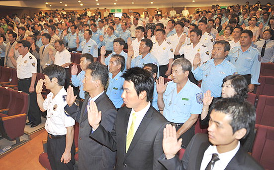 ▲11일 오전 제주한라대학 한라아트홀 대극장에서 제28회 2008 교통사고줄이기운동 범국민대회가 김태환 도지사를 비롯 김상렬 제주지방경찰청장, 모범운전자회 등 도내 교통관련단체 회원과 시민단체 회원 및 가족 등 4백여명이 참가한 가운데 열렸다. /사진=강희만기자 hmkang@hallailbo.co.kr