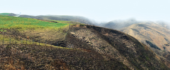 세계 최대급 칼데라에 펼쳐진 초원에선 해마다 2~4월이 되면 들불놓기인 '노야키'를 볼 수 있다. 사진 속 아소 초원에는 잡초를 태우기 위해 불을 지폈던 흔적이 엿보인다.