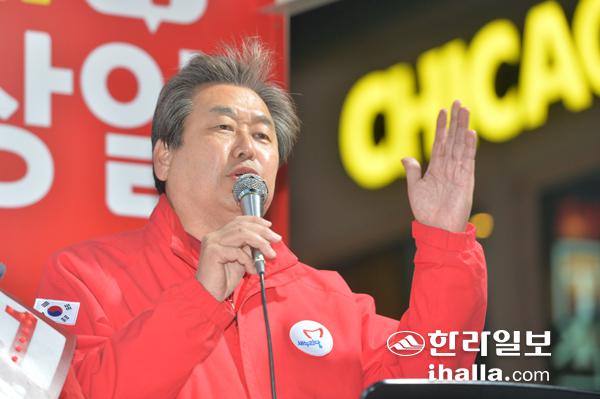 오후 늦게 제주를 찾은 김 대표는 서귀포시 동문로터리에서 강지용 후보와, 제주시청에서 부상일 후보, 하귀 새마을금고 앞에서 양치석 후보와 함께 릴레이 유세전을 벌였다.