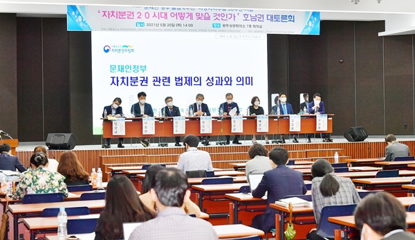 대통령소속 자치분권위원회와 대한민국지방신문협의회는 20일 오후 2시 광주상공회의소 7층 회의실에서 '자치분권 2.0시대 어떻게 맞을 것인가'라는 주제로 호남권 대토론회를 공동 개최했다. 대신협 공동취재단