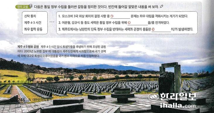 제주4·3이 서술된 고등학교 한국사 교과서. 한라일보DB