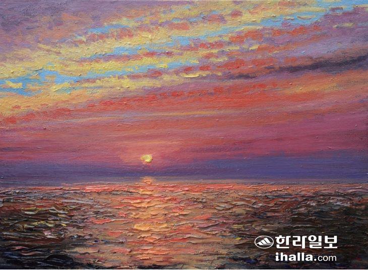 이은선 작 '황혼'. 작가는 너무나 예뻤던 황홀했던 황혼을 보면서 출렁이는 물결, 파도 너머 황홀한 하늘나라를 바라보는 마음을 표현했다고 했다.
