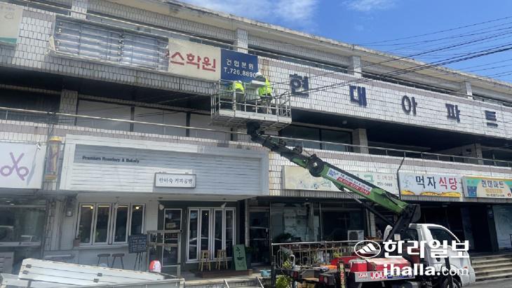 제주시가 올해도 제주도 옥외광고협회 제주시지부와 함께 무단 방치된 노후 간판을 무료로 철거하는 사업을 벌인다. 제주시 제공