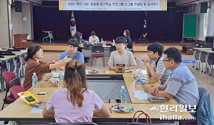 서귀포시교육지원청이 지난 13일 맞춤형 읽기 학습 프로그램 참가 교사를 대상으로 소그룹 컨설팅과 연수를 진행하고 있다. 서귀포시교육지원청 제공