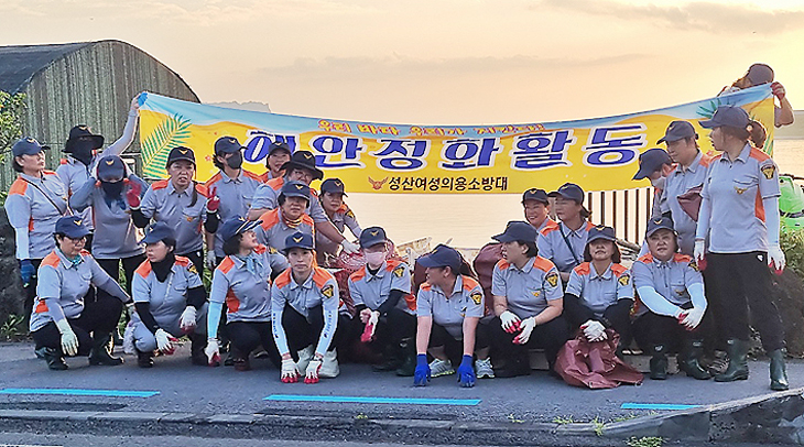 제주동부소방서 성산여성의용소방대(대장 홍재영)는 최근 서귀포시 성산읍 신양리 해안가에서 제6호 태풍 카눈 당시 밀려온 해양쓰레기를 수거하는 등 해양 정화 활동을 전개했다.