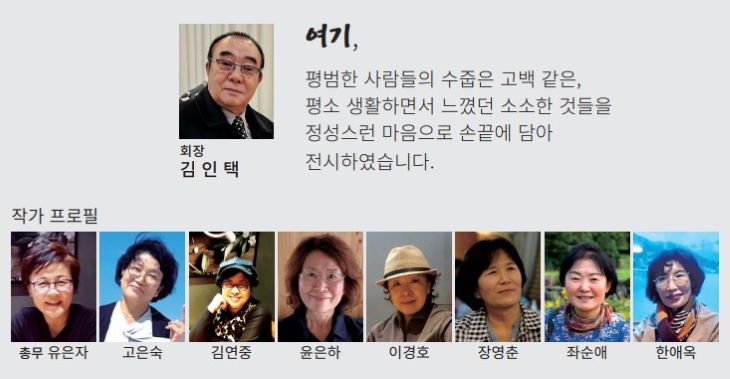 김인택 회장은 "평소 생활하면서 느꼈던 소소한 것들을 정성스런 마음으로 손끝에 담아 전시했다"며 초대장을 띄웠다. 별도의 오프닝은 없으며 관람은 오전 9시부터 오후 6시까지 가능하다.