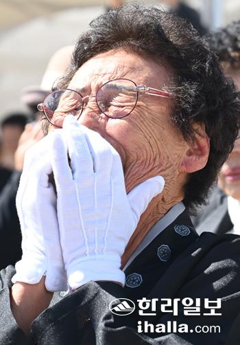 [한라일보] "제주4·3을 생각하면 눈물 밖에 나지 않아요. 남편(고 김문추씨)이 이 모습을 못 보고 세상을 떠난게 억울해 말을 더 이상 할 수 없네요. 그렇게 백방으로 찾으려고 노력했는데. 그래도 여러분들이 모두 아버님을 찾는데 힘써주셔서 감사드립니다."