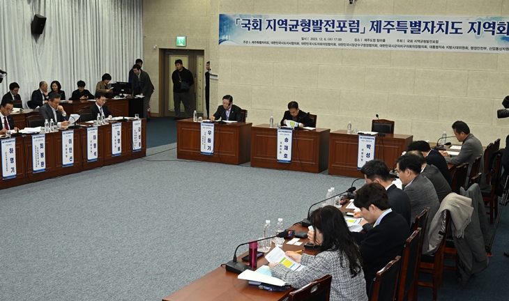 지역문제 해결을 위해 국회와 지방정부가 함께 소통·협력하는 '국회 지역균형발전포럼'제주 지역회의가 6일 제주도청에서 열렸다.