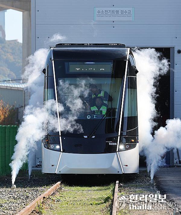 지난 11월 울산에서 열린 수소전기트램 실증 운행 시승 행사에서 수소트램이 출발하고 있다 연합뉴스