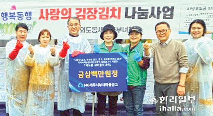 제주서부새마을금고(이사장 이현보)는 지난 14일 제주시 외도동새마을부녀회와 함께 사랑의 김치 담그기 봉사를 하며 지원금 300만원을 전달했다.