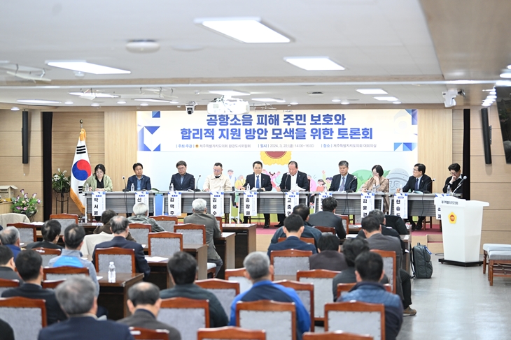 제주특별자치도의회 환경도시위원회(위원장 송창권)는 22일 제주도의회 대회의실에서 '공항소음 피해 주민 보호와 합리적 지원 방안 모색을 위한 토론회'를 개최했다.