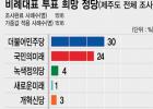 문 후보는 4권역에서 76%로 가장 높게 나타났고 이어 1권역 67%, 2권역 66%, 3권역 65% 순으로 나타났다. 반면 고 후보는 2권역에서 20%로 가장 높았고, 이어 1권역 16%, 4권역 15%, 3권역 14% 등 순이었다.