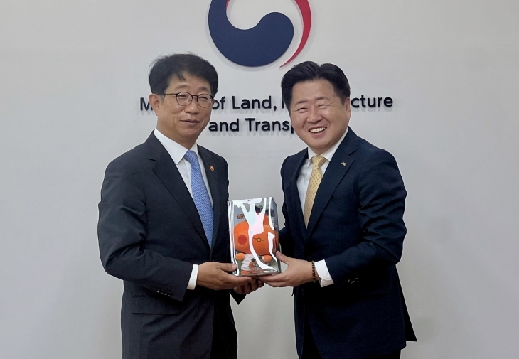 오영훈 제주도지사가 30일 박상우(왼쪽) 국토교통부 장관을 만나 제주 현안에 대한 정부의 지원을 요청했다. 제주도 제공