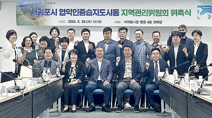 서귀포시는 지난 26일 서귀포시청 별관 셋마당에서 '서귀포시 협약인증습지도시 등 지역관리위원회' 25명이 참석한 가운데 위촉식을 갖고 공동위원장에 김재종 남원읍 수망리장, 부위원장에 오철호 의귀리장을 각각 선출했다. 이번에 위촉된 위원들의 임기는 2024년 6월 16일부터 2026년 6월 15일까지 2년이다.