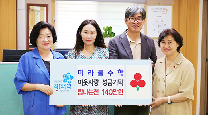 미라클수학학원(원장 오미라)은 지난 26일 연동주민센터에서 140만원 상당의 상품권을 제주사회복지공동모금회(회장 강지언)에 기탁했다.