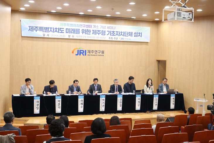 한편 이날 열린 제주특별자치연구센터 개소 기념 세미나에서는 제주형 기초자치단체 설치의 당위성과 추진전략, 제주특별자치연구센터 발전방안, 제주형 기초자치단체의 설치가 행정에 미치는 영향, 제주형 기초자치단체 설치가 정치 및 주민참여에 미치는 영향 등 제주형 기초자치단체 설치와 관련한 다양한 세션이 마련되는 등 도민, 각계 전문가 등이 의견을 공유했다.