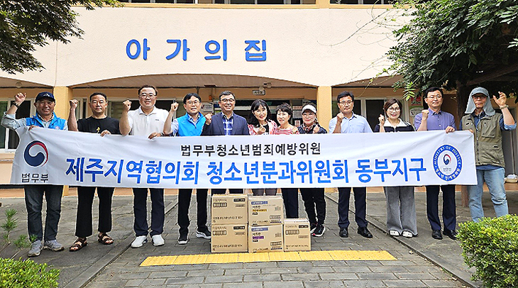 법무부 청소년 범죄예방위원 제주지역협의회(회장 고영두) 청소년분과위원회 동부지구 (회장 강종호)는 지난달 26일 고영섭 지구총무 등 동부지구 12명의 위원과 함께 함덕리에 소재한 장애인 생활시설인 아가의 집을 방문해 생활실 및 주변청소 등 봉사활동을 실시하고 위문물품을 기부했다.