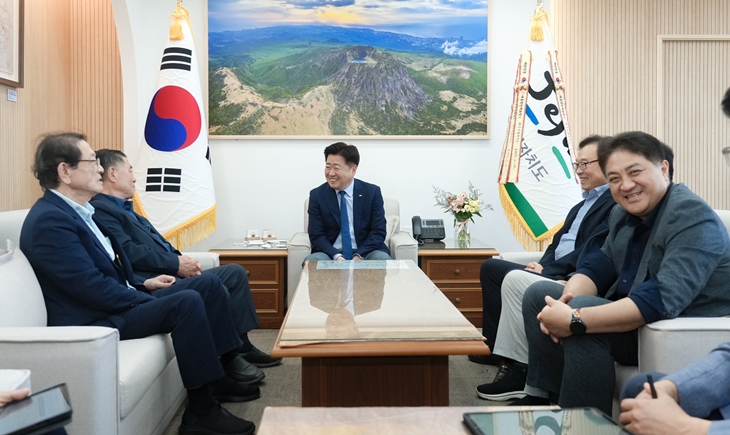 오영훈 제주지사는 3일 감차에 협조한 5개사 대표자를 만나 감사의 뜻을 전했다.<사진>