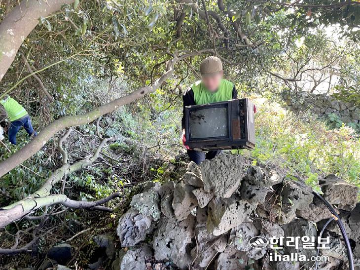 제주시 한경면 저지리 곶자왈 지역에서 수거한 폐기물.