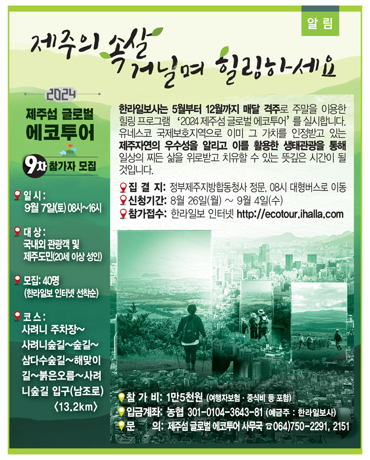 [알림] '2024 제주섬 글로벌 에코투어' - 9차 참가자 모집