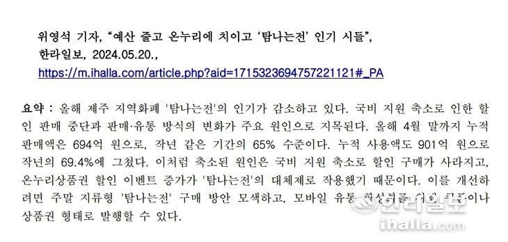 [한라일보] 자료만으로는 팩트체크, 즉 검증이 쉽지 않구나. 무엇을 더 보완을 해야할까? 전문가에게 물어보는 방법을 택했다. '우리가 알고 있는 전문가가 있나?'하며 당황스러울 때 "전문가뿐만 아니라 탐나는전을 사용하는 사람들, 탐나는전 가맹점 사장님 등 각 분야의 다양한 사람들을 여러 가지 방법으로 만나서 물어보면 어떨까?"하고 서현이가 의견을 냈다. 그럼 구체적으로 누구에게 어떤 방법으로 물어보면 될지 본격적인 준비에 들어갔다.