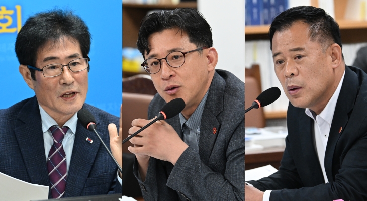 사진 왼쪽부터 제주도의회 문화관광체육위원회 고태민 위원장과 양영수, 김대진 의원. 제주도의회 제공