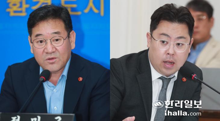 사진 왼쪽부터 제주도의회 환경도시위원회 정민구 위원장과 한동수 의원. 제주도의회 제공