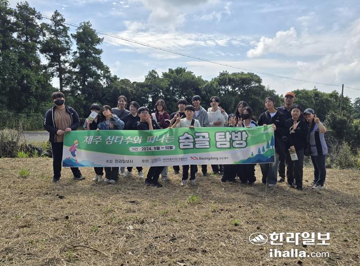 한라일보가 제주개발공사, 광동제약과 공동으로 마련한 '제주삼다수와 떠나는 숨골 탐방'이 지난 12일 오름중학교 학생 18명을 대상으로 진행됐다. 이날 탐방은 제주시 조천읍 함덕리와 서귀포시 성산읍 온평리에 위치한 숨골을 탐방하는 일정으로 이어졌다. 강순석 제주지질연구소장(지질학 박사)이 동행해 숨골에 대해 설명했다.