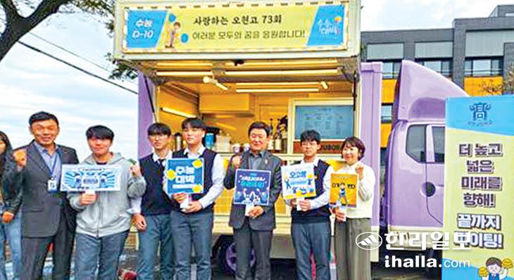 오현고등학교(교장 강재길) 학부모회(회장 홍수미)는 지난 4일 교내에서 대입 수능 수험생과 재학생을 위한 응원 캠페인을 전개했다.