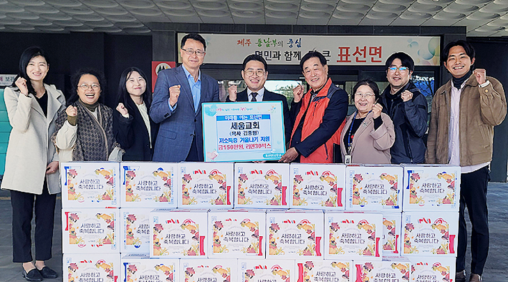 서귀포시 표선 세움교회(목사 김종범)는 지난 7일 서귀포시 표선면(면장 강현호)에 지역 내 어려운 이웃들을 위한 성금 150만원과 라면 30박스를 기탁했다.