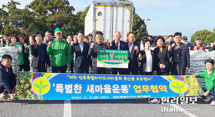 제주특별자치도새마을회(회장 김창기)는 지난 8일 전북특별자치도새마을회와 농산물 교류를 통한 도농 상생과 지역 경제 활성화를 위해 업무협약을 체결했다.
