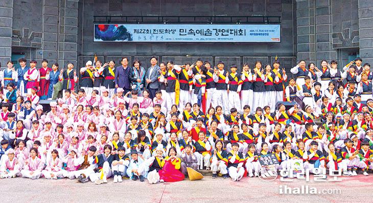 제주특별자치도문화원연합회(회장 강명언) 주최로 지난 9일 제주해변공연장에서 열린 제22회 전도학생민속예술경연대회에서 한라초등학교가 풍물경연대회 최우수상을 차지했다.