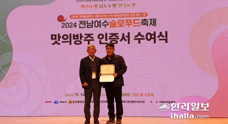 제주 전통식품 5종에 대한 '맛의 방주' 등재서 전달. 제주도 제공