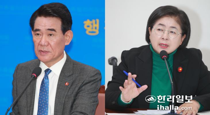 사진 왼쪽부터 제주도의회 행정자치위원회 박호형 위원장과 김경미 의원. 제주도의회 제공