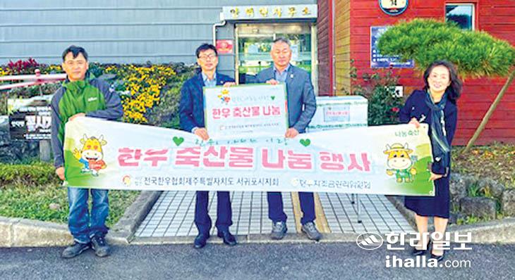 전국한우협회 서귀포시지회(회장 송치훈)는 지난 18일 서귀포시 안덕면을 방문해 한우 불고기 50팩(100만원 상당)을 기탁했다. 기탁받은 물품은 지역아동센터 등 복지 시설에 전달될 예정이다.