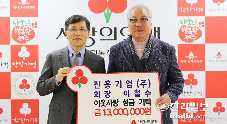 [한라일보] (주)진흥기업(회장 이철수)은 지난 3일 제주사회복지공동모금회(회장 강지언) 사무실에서 희망2025나눔캠페인 성금 1300만원을 기탁했다.