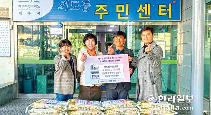제주충신교회(위임목사 김희식)는 지난 4일 제주시 외도동주민센터에 방문해 관내 어려운 이웃을 위해 써 달라며 100만원 상당 백미 10㎏ 37포를 기탁했다.