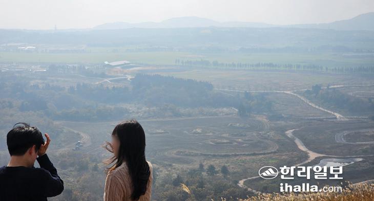 미세먼지로 뿌옇게 보이는 제주.