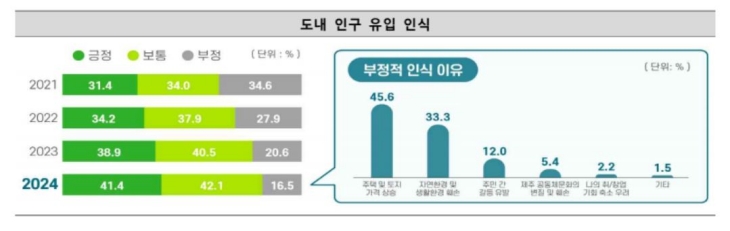 '2024 제주의 사회지표' 조사를 통해 확인된 인구 유입을 바라보는 도민들의 인식. 제주도 제공