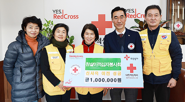 이번 성금은 도내 인도주의 실천과 도민 복지 향상을 위한 제주적십자사 신사옥 이전과 대한적십자사 제2인재개발원 유치 비용을 위해 참살이적십자봉사회 회원들이 마음을 모아 마련한 것이다.