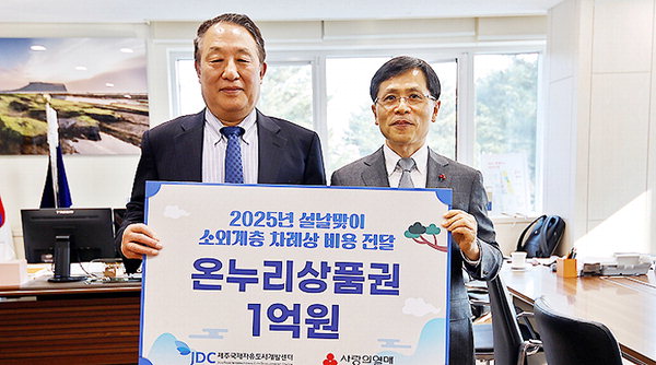 [한라일보] 제주국제자유도시개발센터(이사장 양영철, JDC)는 지난 20일 탐나는전 1억원을 제주사회복지공동모금회(회장 강지언)에 기탁했다.