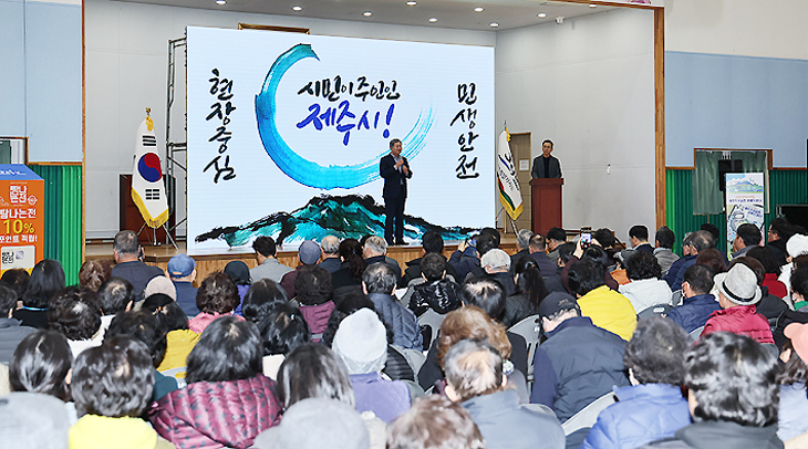 제주시는 23일 사라봉다목적체육관에서 26개 읍·면·동 이장, 통장, 반장 1000여 명을 대상으로 역량강화 교육과 도·시정 시책 공유를 위한 설명회를 개최했다.