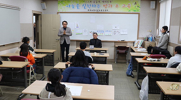 [한라일보] 김완근 제주시장은 지난 4일 한경농협 여성농업인센터 방과후 교실을 방문해 프로그램과 여성농업인센터 현황을 점검하고 공부방 아이들과의 질의응답을 진행했다.