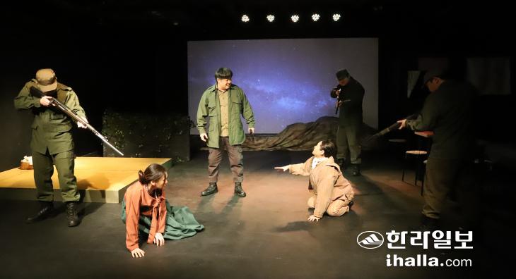 김이영(정자 역), 이지선(미츠코), 이룻영실(마유), 강상훈(작가), 김현주(젊은 정자), 전유비(강길남), 김금희(시어머니), 강민엽(종수), 김시혁(충훈), 이경식(서북청년단 대장), 김석진(서북청년단1), 고호건(서북청년단2), 김구민(서북청년단3), 강온유(영상 출연) 등이 출연했다. 극단 세이레 김이영 대표는 "오는 4월에 열리는 대한민국연극제 제주예선대회에 이 작품으로 참가할 예정"이라며 다음 만남을 예고하기도 했다.