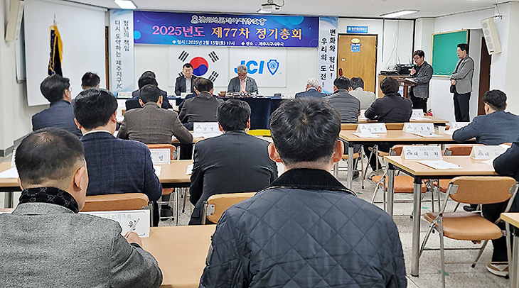 제주지구 제이씨특우회(지구회장 유철수)는 지난 15일 지구 사무처에서 제77차 정기총회를 갖고 2025년도 사업계획 및 예산(안)을 승인·의결했다.